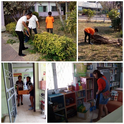 วันที่ 4 มีนาคม พ.ศ.2559 เวลา 14.00 น. ทีมงานจิตอาสาได้ร่วมไม่ร่วมมือช่วยครูทำความสะอาดทั้งตัวอาคารสำนักงาน ห้องสมุด และบริเวณภายนอก ช่วยติดประกาศชื่อสนามสอบ ทำความสะอาดห้องประชุมอำเภอวังม่วงและจัดโต๊ะเพื่อเตรียมใช้ในการจัดโครงการส่งเสริมการเรียนรู้วิทยาศาสตร์เพื่อพัฒนาชุมชน ในวันอาทิตย์ ที่ 6 มีนาคม พ.ศ.2559 ร่วมกับ ศูนย์วิทยาศาสตร์เพื่อการศึกษาพระนครศรีอยุธยา