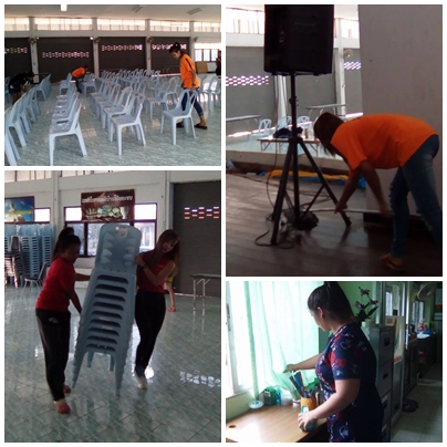 จิตอาสาเตรียมสถานที่ในการจัดกิจกรรมเรียนรู้วิทยาศาสตร์