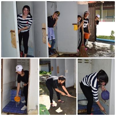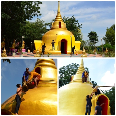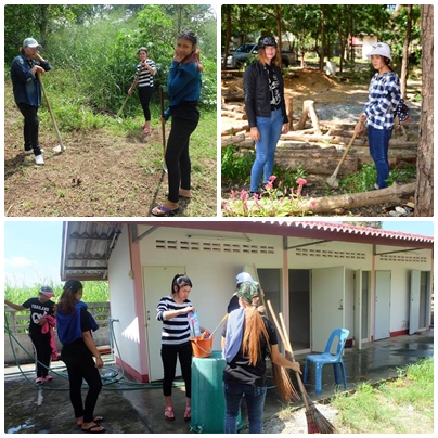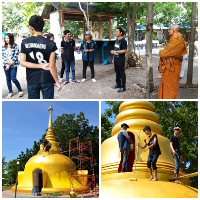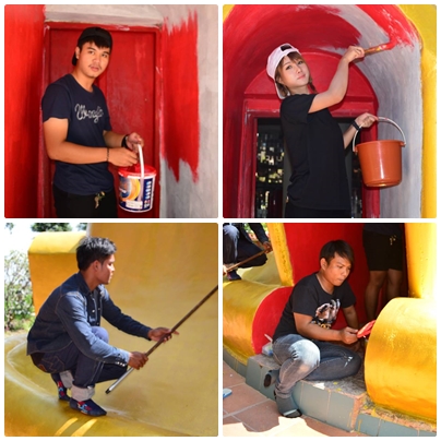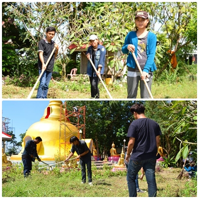 วันที่ 23 ตุลาคม พ.ศ.2559 ทีมงานชมรมจิตอาสา กศน.อำเภอวังม่วง ร่วมใจกันพัฒนาวัดโป่งตะขบ โดยการทาสีทองให้กับองค์เจดีย์ใหม่ พัฒนาสถานที่บริเวณที่ทำปริวาสกรรม ทำความสะอาดห้องน้ำของวัดรองรับงานกฐินในสัปดาห์หน้า แม่ชีใจดีตำส้มตำให้กินด้วย และได้กินข้าวก้นบาตรกันทุกคน วันนี้ทีมงานของเรา ประกอบด้วยนักศึกษารวมกันทั้งสามตำบล ต.คำพราน ได้แก่ อิ๋ว บอม เอ๋ สม เต๋า แก้ว ฟม ทัศวรรณ บี ขนิษฐา ใหม่หญิง ต.แสลงพัน ได้แก่ นก นุ่ม นิ่ม ชาม ณรงค์ศักดิ์ ต.วังม่วง ได้แก่ โน้ต ตั้ง ใหม่ มาร์ค รวม 20 ชีวิต