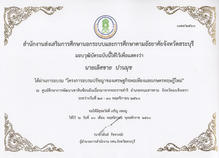 เอกสารการประกอบวิชาชีพ วุฒิบัตร เกียรติบัตร ประกาศนียบัตร ที่ได้รับ