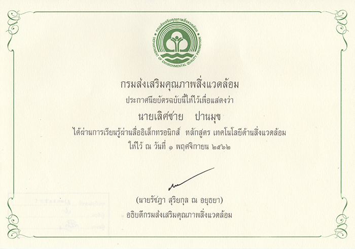 ประกาศนียบัตร (E-Learning) ของกรมส่งเสริมคุณภาพสิ่งแวดล้อม