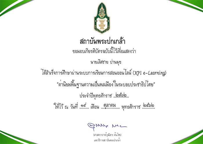 ประกาศนียบัตร (E-Learning) ของสถาบันพระปกเกล้า