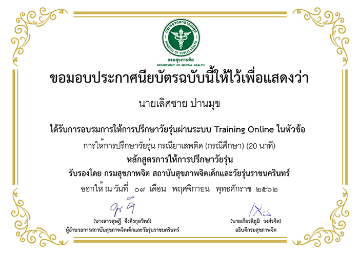 ประกาศนียบัตร (E-Learning) ของกรมสุขภาพจิต