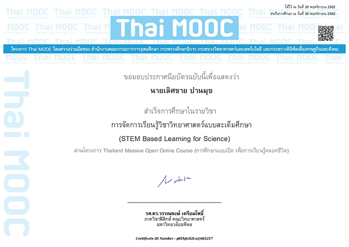 ประกาศนียบัตร (E-Learning) ของ Thai MOOC