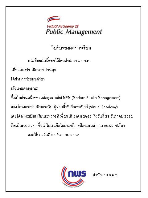 ประกาศนียบัตร (E-Learning) ของสำนักงานคณะกรรมการพัฒนาระบบราชการ (กพร.)
