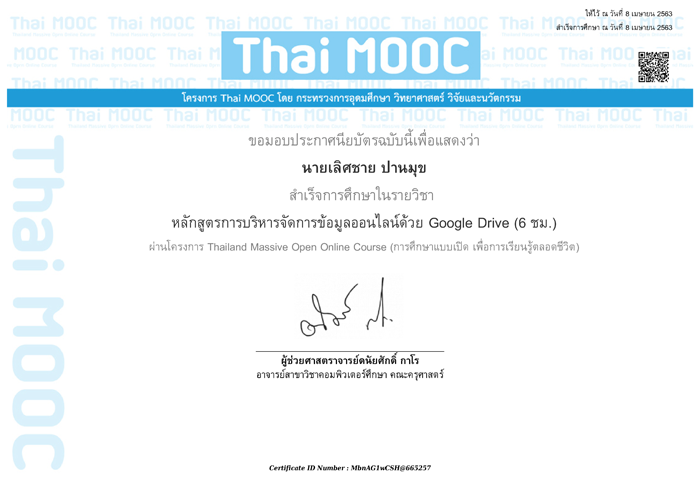 ประกาศนียบัตร (E-Learning) ของ Thai MOOC