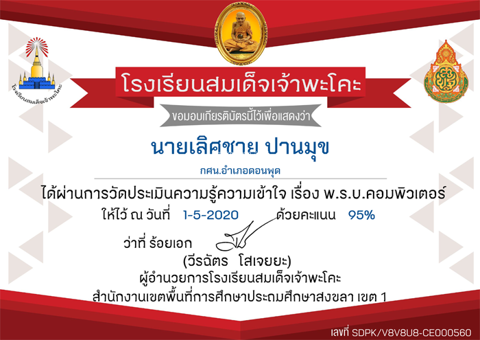 เกียรติบัตร ที่ผ่านการทดสอบออนไลน์ ของหน่วยงานการศึกษาต่าง ๆ