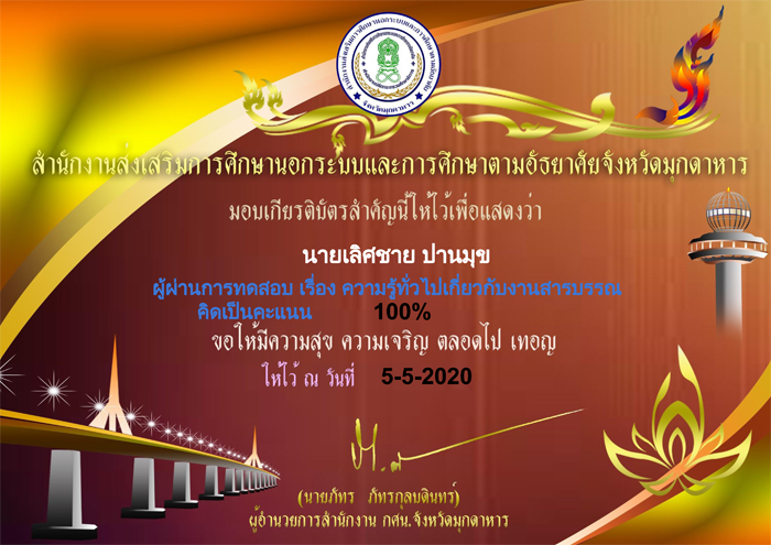 เกียรติบัตร ที่ผ่านการทดสอบออนไลน์ ของหน่วยงานการศึกษาต่าง ๆ