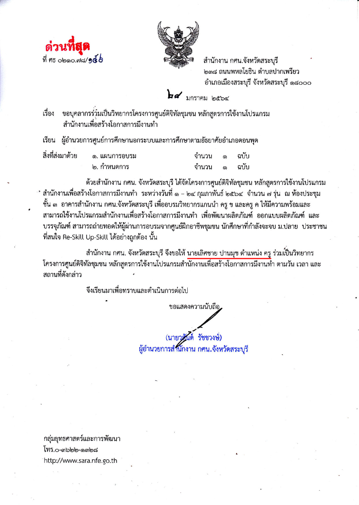 หน่วยงาน สำนักงาน กศน.จังหวัดสระบุรี