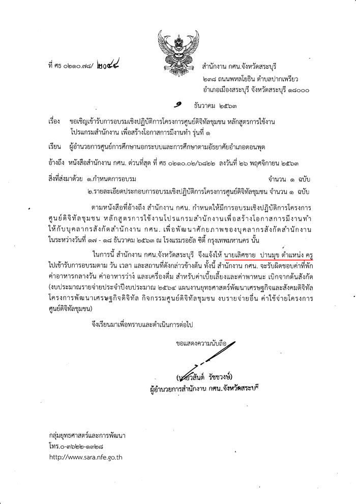 อบรมเชิงปฏิบัติการ โครงการดิจิทัลชุมชน (ครู ก)