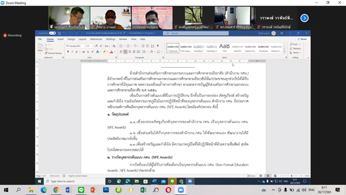 ร่วมประชุมคณะกรรมการพิจารณาหลักเกณฑ์การคัดเลือกบุคลากรต้นแบบ กศน. (NFE Awards) ประจำปี 2565 ผ่านระบบออนไลน์