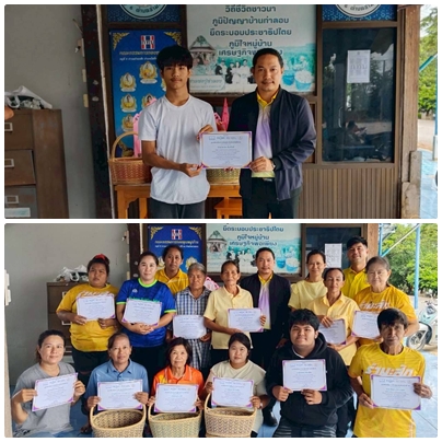 มอบเกียรติบัตรผู้จบหลักสูตรการทำตะกร้าจากเส้นหวายเทียม (UNESCO)