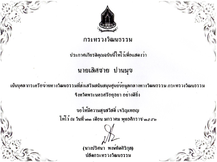 หัวข้อ: บุคลากรเครือข่ายทางวัฒนธรรมที่ส่งเสริมสนับสนุนศูนย์ข้อมูลกลางทางวัฒนธรรม (วธ.) (อ่าน 7197 ครั้ง)