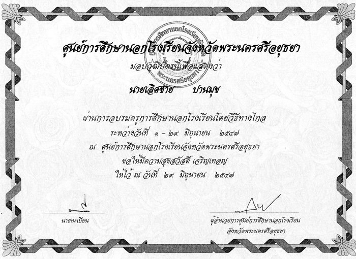 เอกสารการประกอบวิชาชีพ วุฒิบัตร เกียรติบัตร ประกาศนียบัตร ที่ได้รับ