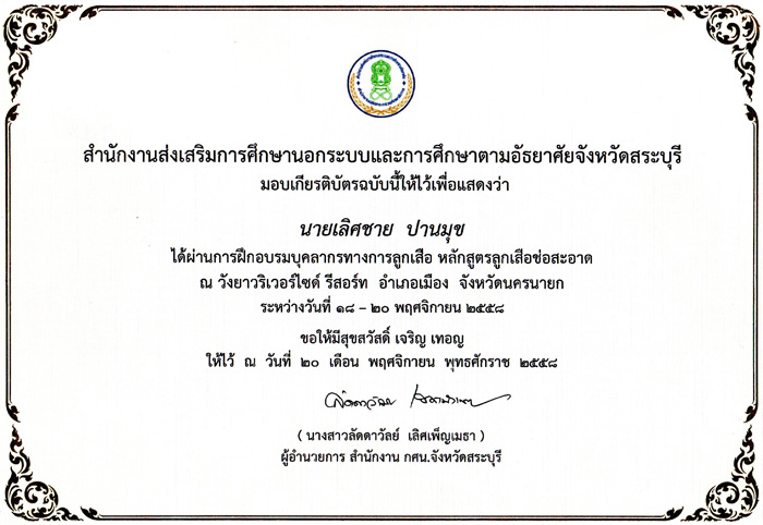 เอกสารการประกอบวิชาชีพ วุฒิบัตร เกียรติบัตร ประกาศนียบัตร ที่ได้รับ