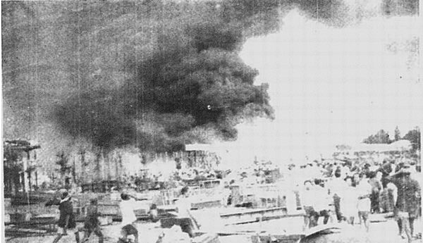 อัคคีภัยครั้งนี้ได้เกิดขึ้นเมื่อราว ๑๔.๓๐ น.ของวันที่ ๙ กันยายน ต้นเพลิงเกิดจากร้านโชห่วยค้าทั้งปลีกและค้าส่งประเภทอาหารกระป๋อง และไปขาดทุนจากการทำเหมืองที่ปิล็อก กาญจนบุรี ก่อนหน้านั้นประมาณ ๑ เดือนก็เคยเกิดไฟไหม้ที่ร้านนี้มาครั้งหนึ่งแล้ว แต่ชาวบ้านช่วยกันดับทัน ครั้งนี้ไฟได้โหมขึ้นอย่างรวดเร็วจนตั้งสติกันไม่ทัน จังหวัดราชบุรีและนครปฐมที่อยู่ใกล้ ก็มีรถดับเพลิงจังหวัดละคันเท่านั้น ต้องโทรเลขขอจากกรุงเทพฯให้มาช่วย ซึ่งก็ส่งมาได้แค่ ๒ คัน แต่กว่าจะได้รับโทรเลขและกว่าจะเดินทางมา ๗๐ กิโลเมตร บ้านเรือนร้านค้ากว่า ๘๐๐ หลังของทั้งสองตลาดที่ส่วนใหญ่เป็นไม้ ก็ราบเรียบเป็นเถ้าถ่านไปหมดแล้ว มีคนตาย ๓ คน รวมทั้งลูกเสือ ๑ คนที่เข้าไปช่วยชีวิตคนอื่น ประชาชนกว่า ๖,๐๐๐ คนประสบภัย ทรัพย์สินเสียหายกว่า ๖๐ ล้าน มีผู้ประกันไฟไว้เพียง ๑๑๕ ราย เป็นเงินรวม ๓,๗๗๕,๐๐๐ บาท อาแป๊ะแก่คนหนึ่ง มีร้านขายผ้า ๒ คูหาอยู่ติดกับร้านต้นเพลิง และยังเป็นประธานโรงเจ มีหน้าที่เก็บรักษาเงินบริจาคจำนวนมากของโรงเจไว้ แต่ก็ขนอะไรไม่ทัน สูญทั้งทรัพย์สินของตัวเองและของโรงเจจนหมด เสียใจถึงกับยอมตายในกองเพลิง แต่เพื่อนบ้านช่วยกันอุ้มออกมาได้