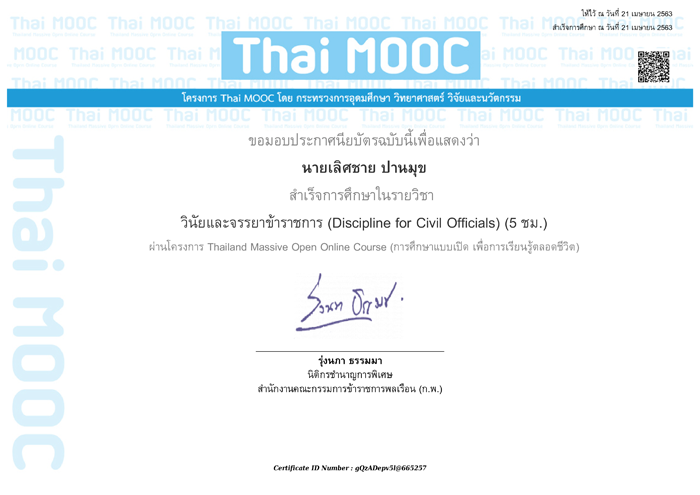 ประกาศนียบัตร (E-Learning) ของ Thai MOOC