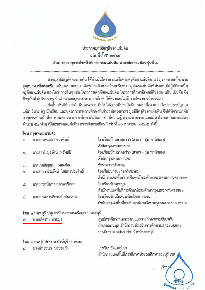 ต่ออายุการทำหน้าที่อาสาของแผ่นดิน สาขากัลยาณมิตร รุ่นที่ 1