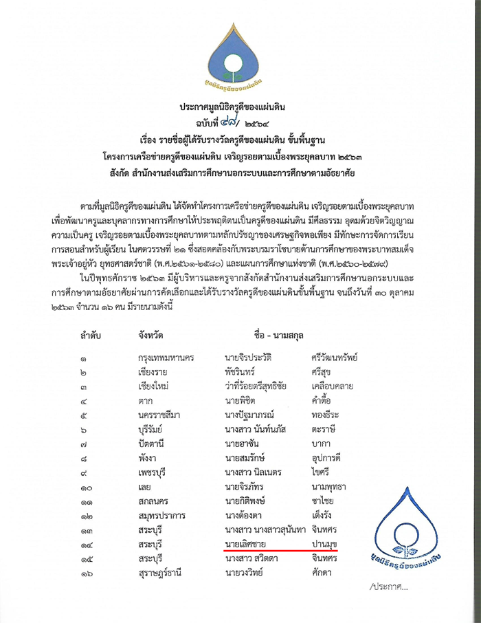 ของมูลนิธิครูดีของแผ่นดิน