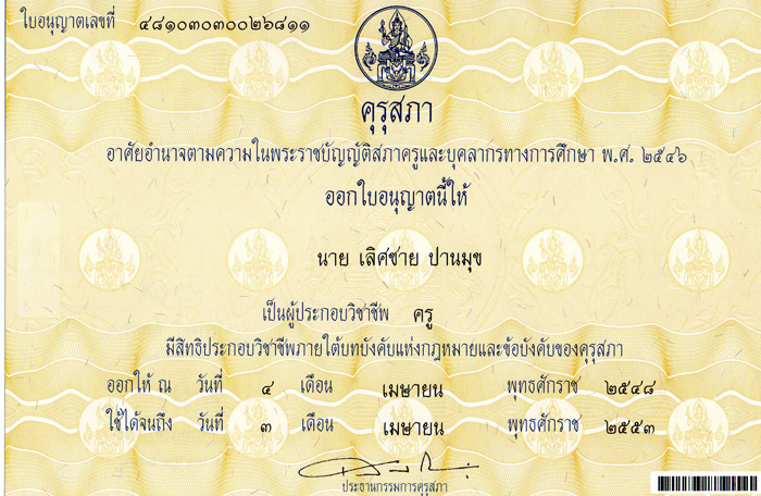 หัวข้อ: ใบประกอบวิชาชีพครู ฉบับที่ 1 พ.ศ.2548-2553 (อ่าน 8388 ครั้ง)