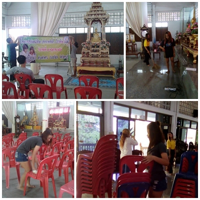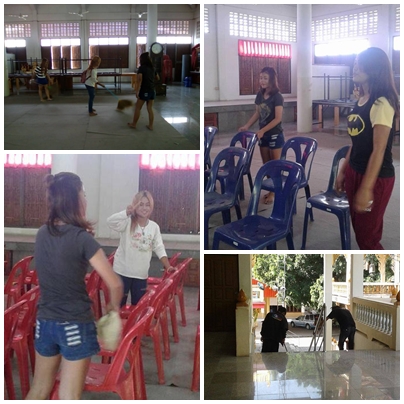 วันที่ 14 พฤษภาคม พ.ศ.2559 นักศึกษากลุ่มจิตอาสามาช่วยจัดเตรียมสถานที่เพื่อรองรับการปฐมนิเทศในภาคเรียนที่ 1 ปีการศึกษา 2559 ณ ศาลาวัดภิบาลวังม่วง