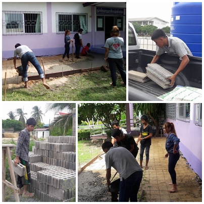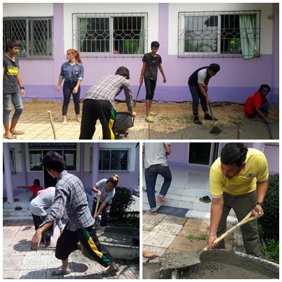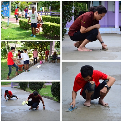 วันที่ 10-11 สิงหาคม พ.ศ.2559 นักศึกษากลุ่มจิตอาสา ร่วมด้วยช่วยกัน เทปูน หน้าอาคารและทางเท้า เพื่อให้มีความสวยงามครับ