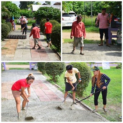 จิตอาสา ร่วมด้วยช่วยกัน เทปูน หน้าอาคารและทางเท้า