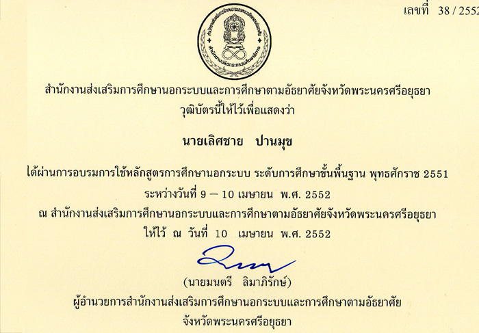 หัวข้อ: การอบรมการใช้หลักสูตรการศึกษานอกระบบระดับการศึกษาขั้นพื้นฐาน พ.ศ.2551 (2552) (อ่าน 6937 ครั้ง)