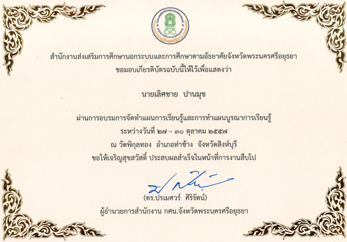 เอกสารการประกอบวิชาชีพ วุฒิบัตร เกียรติบัตร ประกาศนียบัตร ที่ได้รับ
