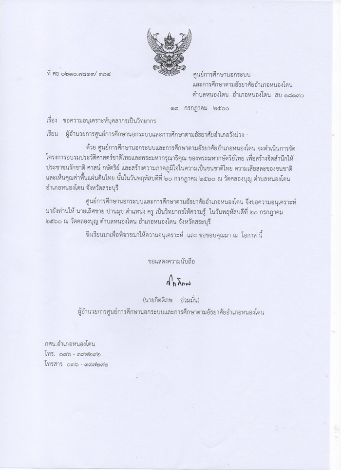 วิทยากรโครงการอบรมประวัติศาสตร์ชาติไทยบุญคุณของพระมหากษัตริย์ไทย (กศน.หนองโดน)