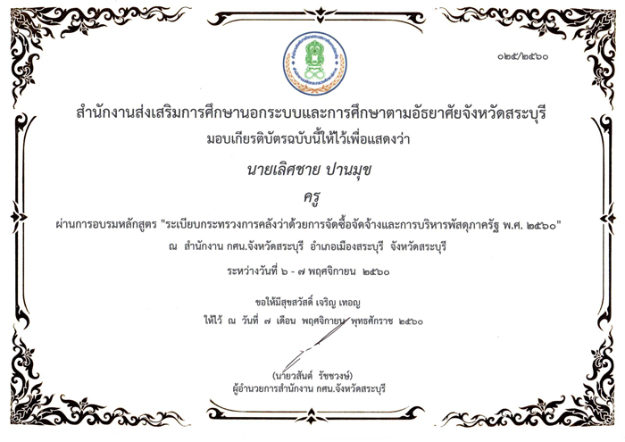 เอกสารการประกอบวิชาชีพ วุฒิบัตร เกียรติบัตร ประกาศนียบัตร ที่ได้รับ