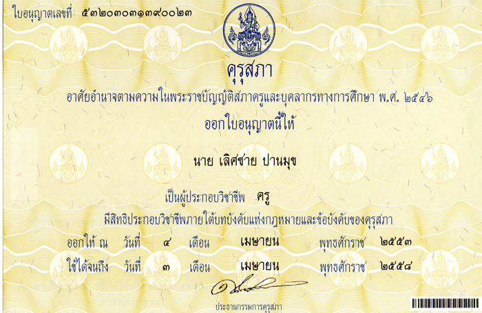 ใบประกอบวิชาชีพครู ฉบับที่ 2 พ.ศ.2553-2558