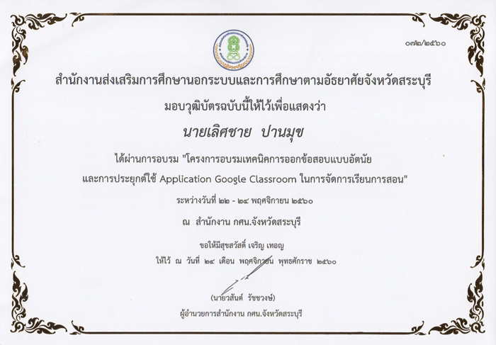 หัวข้อ: โครงการอบรมเทคนิคออกข้อสอบอัตนัยและการประยุกต์ใช้ Google Classroom (อ่าน 7560 ครั้ง)