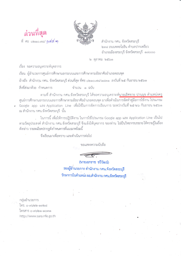 หน่วยงาน สำนักงาน กศน.จังหวัดสระบุรี