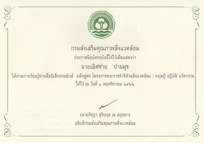 ประกาศนียบัตร (E-Learning) ของกรมส่งเสริมคุณภาพสิ่งแวดล้อม