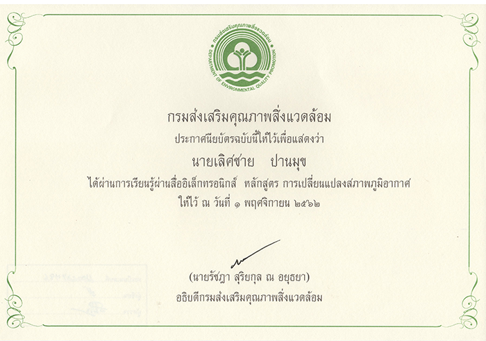 ประกาศนียบัตร (E-Learning) ของกรมส่งเสริมคุณภาพสิ่งแวดล้อม