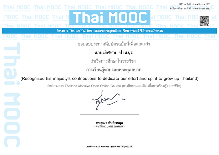 ประกาศนียบัตร (E-Learning) ของ Thai MOOC