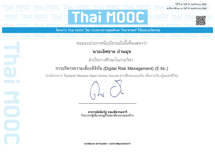 ประกาศนียบัตร (E-Learning) ของ Thai MOOC