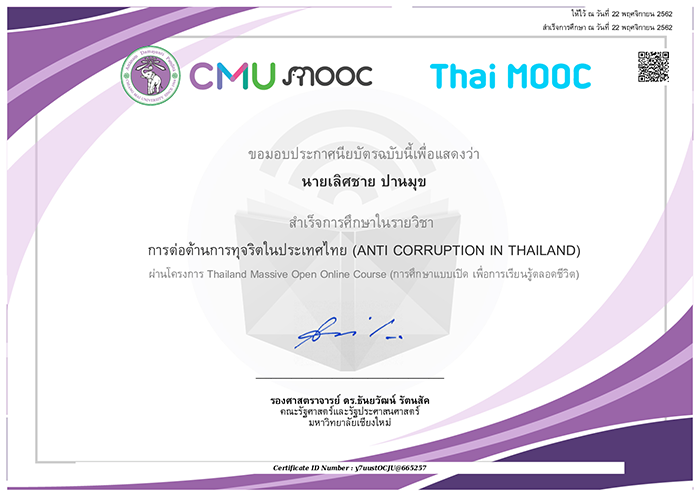 ประกาศนียบัตร (E-Learning) ของ Thai MOOC