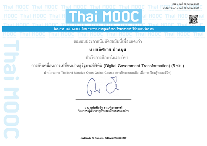 ประกาศนียบัตร (E-Learning) ของ Thai MOOC