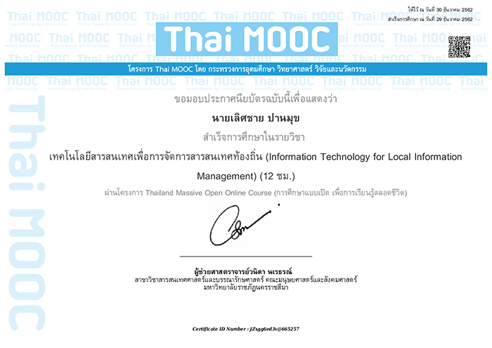 ประกาศนียบัตร (E-Learning) ของ Thai MOOC