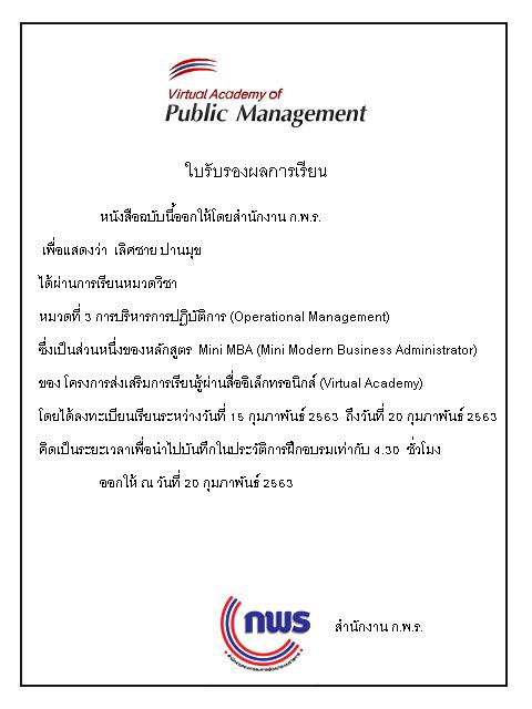 ประกาศนียบัตร (E-Learning) ของสำนักงานคณะกรรมการพัฒนาระบบราชการ (กพร.)