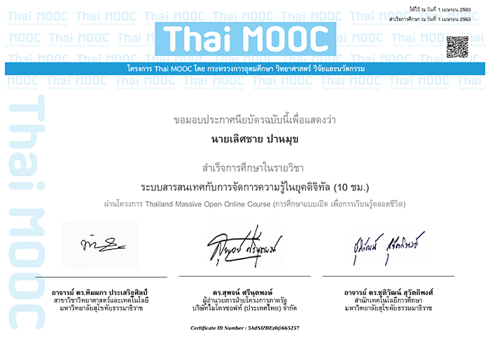 ประกาศนียบัตร (E-Learning) ของ Thai MOOC