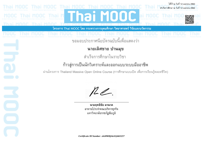 ประกาศนียบัตร (E-Learning) ของ Thai MOOC
