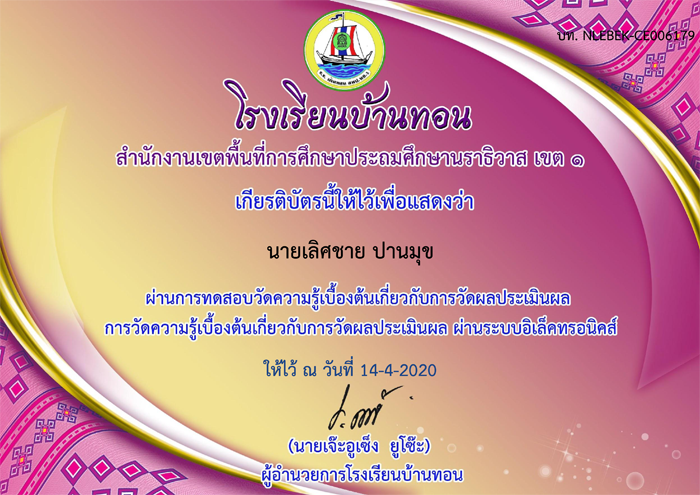 เกียรติบัตร ที่ผ่านการทดสอบออนไลน์ ของหน่วยงานการศึกษาต่าง ๆ