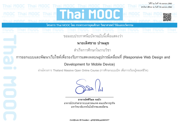 ประกาศนียบัตร (E-Learning) ของ Thai MOOC