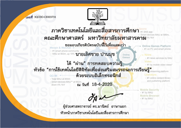 การใช้เทคโนโลยีดิจิทัลเพื่อส่งเสริมสมรรถนะการเรียนรู้ (ม.มหาสารคาม)