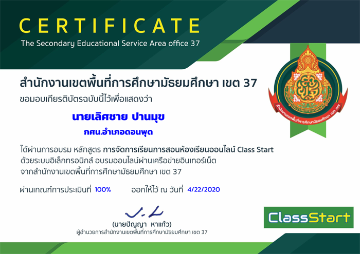 หัวข้อ: การจัดการเรียนการสอนห้องเรียนออนไลน์ Classstart (สพม.37) (อ่าน 5019 ครั้ง)