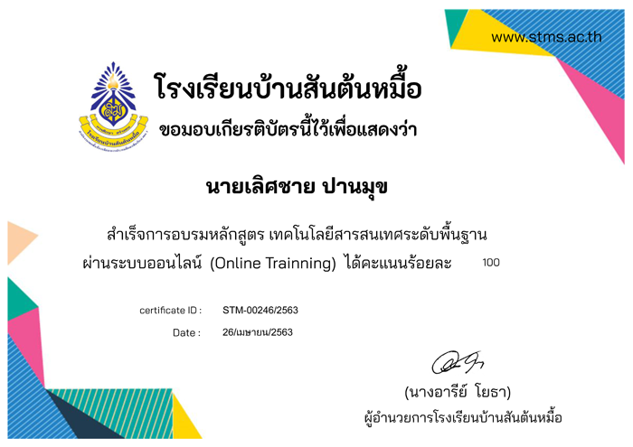เกียรติบัตร ที่ผ่านการทดสอบออนไลน์ ของหน่วยงานการศึกษาต่าง ๆ