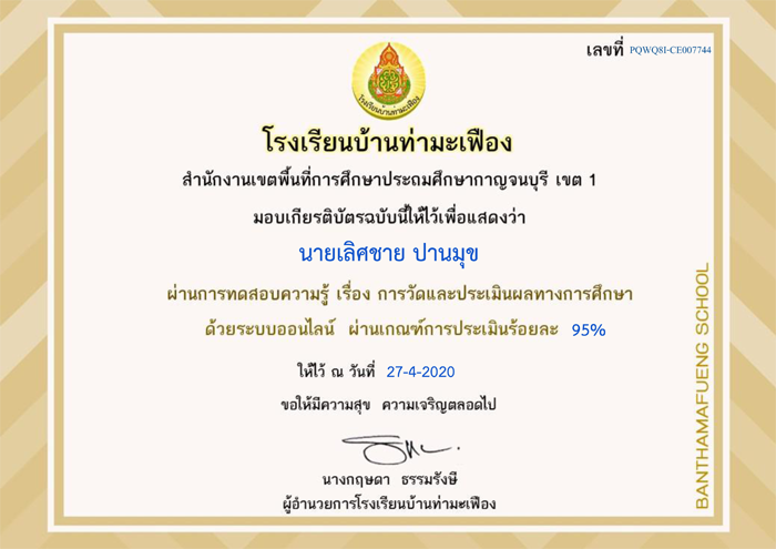 เกียรติบัตร ที่ผ่านการทดสอบออนไลน์ ของหน่วยงานการศึกษาต่าง ๆ